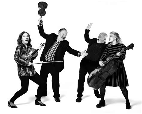 3. Jeg nærer en avstandsfascinasjon til strykekvartetter, og til bildene av dem. De er ofte litt “lekne”, som om de forsøker å bryte med forventningen om at klassisk musikk skal være noe stivt og høytidelig. Ja, for de er jo et band også, autonome enheter, ingen dirigent i sikte, flat struktur. Dermed faller det seg for eksempel sånn noenlunde naturlig for et ensemble som Brodsky-kvartetten å se sånn her ut på pressebildene sine. Tjolahopp!