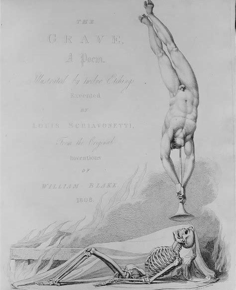 Omslag til Robert Blairs dikt «The Grave. A poem» av William Blake fra 1808.