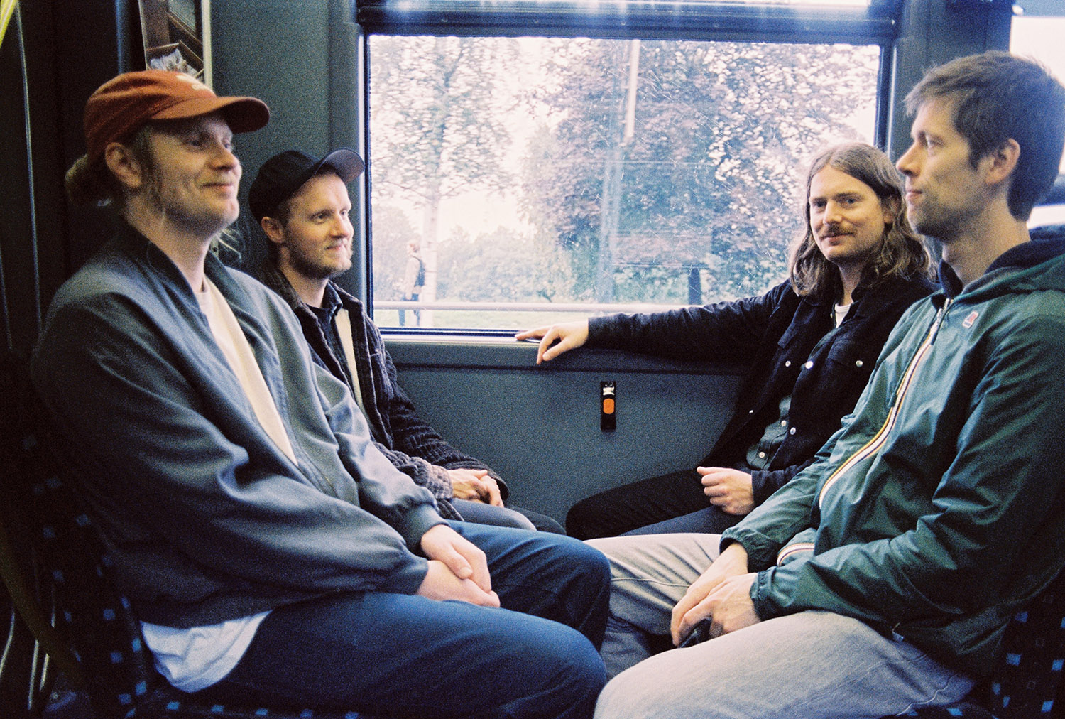 WIZRD på trikken. Axel Skalstad, Vegard Lien Bjerkan, Hallvard Gaardløs og Karl Bjorå. Foto: Eirik Havnes