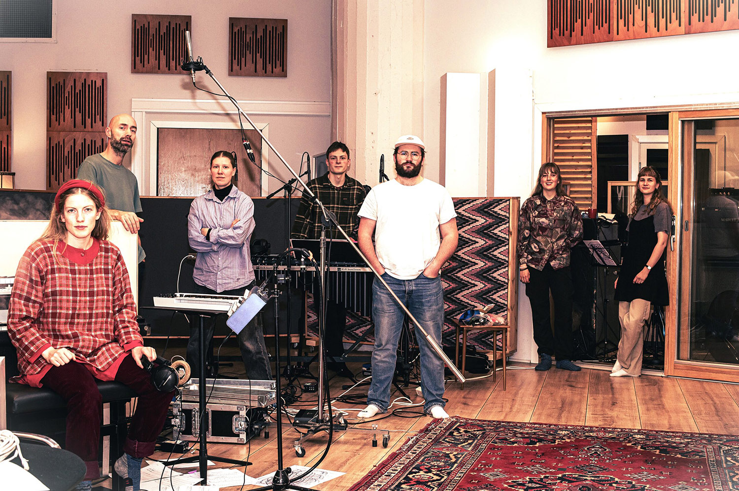— Jeg tenkte fort at jeg ønsket å lage en slags oktett/septett, jeg hadde lyst til å ha med no’ lydtekniske artigheter, og så hadde jeg lyst til å lage et verk med hovedfokus på improvisasjonen og storformen, og ikke komposisjonene isolert sett. Da jeg skulle skrive dette hadde jeg jo aldri skrevet noe særlig mer enn en låt her og der. Så det å skrive et fullt verk med masse kompliserte komposisjoner og imponerende/vanskelige taktarter var ganske uaktuelt for min del. Jeg ønsket å ha improvisasjon og storformen som hovedmaten i verket. Med inspirasjon fra Paal Nilssen-Love valgte jeg å bruke grafiske partiturer for å gi musikerne en oversikt over storform og mat inn til improvisasjonen. Jeg malte og tegnet en god del av musikken, det ene bildet som er malt finner du på baksiden av LP’en! Når jeg tidlig visste at dette var måten jeg ville skrive verket, falt personene egentlig veldig fort på plass. Ønsket for plata var å lage et slags vakuum, og det syntes jeg vi fikk til veldig fint! Anna Ueland og Eirik Hegdal var de to første jeg tenkte på allerede når jeg fikk vite om at jeg skulle få prisen, i en hage i Polen sommeren 2023. Anna fordi hun er så utrolig bra person å jobbe med, har en fantastisk palett som inkluderer heavy støyimpro, men også fantastiske synthsoloer. Eirik måtte med. Han er grunnen til at jeg spiller musikk i dag, jeg trodde aldri han kom til å si ja, men jeg spurte han i et litt svakt øyeblikk. I Brasil på vei til karneval-stadion med litt øl innabords, han sa ja tvert uten å tenke seg om! Videre finner vi Åsmund Skjeldal Waage som jeg gikk sammen med på NMH og som jeg synes gjør vibrafon/elektronikk-greia veldig kult, det ligger så naturlig for ham. I kompet finner vi to legender, Veslemøy Narvesen og Kertu Aer, de trenger ingen introduksjon, men i likhet med de andre, kom lyden av de inn i verket tidlig. Sjangerfrihet og måten de møter musikken med respekt var viktig for min del! Heidi Kvelvane ville jeg ha med siden vi spiller veldig godt i lag, samtidig som hun også var med på XXL Unit og forstår og leser grafiske ting. Til slutt finner vi Terje Hallan som er en tekniker jeg har jobbet masse med via andre jobber. Jeg ville ha med ham fordi jeg trengte noen som kunne gjøre live prosessering av fri-impro med typ null øving. Han leser også noter og grafiske partiturer som var ganske essensielt med tanke på hvor liten tid vi hadde. Ble det som jeg forestilte meg? Vanskelig å si, men jeg ble veldig fornøyd med resultatet og er happy med at dette ble mitt første verk.
