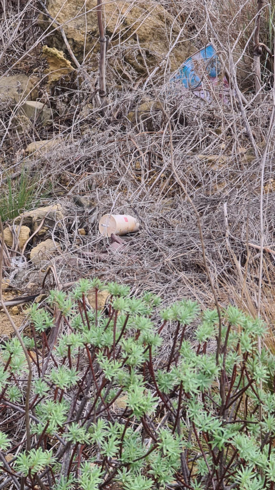 Etter å ha tatt bildet tusler jeg bortover veien i retning nærmeste busstopp. I en sving ser jeg et McDonalds-pappkrus som noen har kastet fra veien og ned i et buskas i skrenten. Det er langt fra det eneste søppelet langs veien, men det er det eneste jeg tar bilde av. Det er noe med avstanden fra veien som går voldsomt inn på meg. Noen har virkelig tatt i og kastet dette kruset, med kraft, inn i disse prehistoriske omgivelsene. Det kan selvsagt tenkes at kruset ble kastet fra en bil i fart, men enten det er noe med vinkelen eller bare ren overtro så forekommer det meg at det ikke var det som skjedde. Noen hadde stått der jeg står og sett ut over den samme ville ravinen hvori en neolithisk hule har fått stå intakt siden før pyramidene ble bygget, og da det surkla i isbitene i enden av sugerøret løftet dette mennesket armen og kitta kruset så hardt de klarte, rett ut fra veien, så langt inn i landskapets ansikt de bare kunne. Den trassen, tenkte jeg. Den trassen kjenner jeg. Trassen som reagerer på skjønnhet som om det er en anklage. Trassen som vil jekke omgivelsene ned til sitt nivå heller enn å heve sitt eget. Hvis det faktisk ikke finnes håp for mennesket her i verden så er det på grunn av den trassen.
