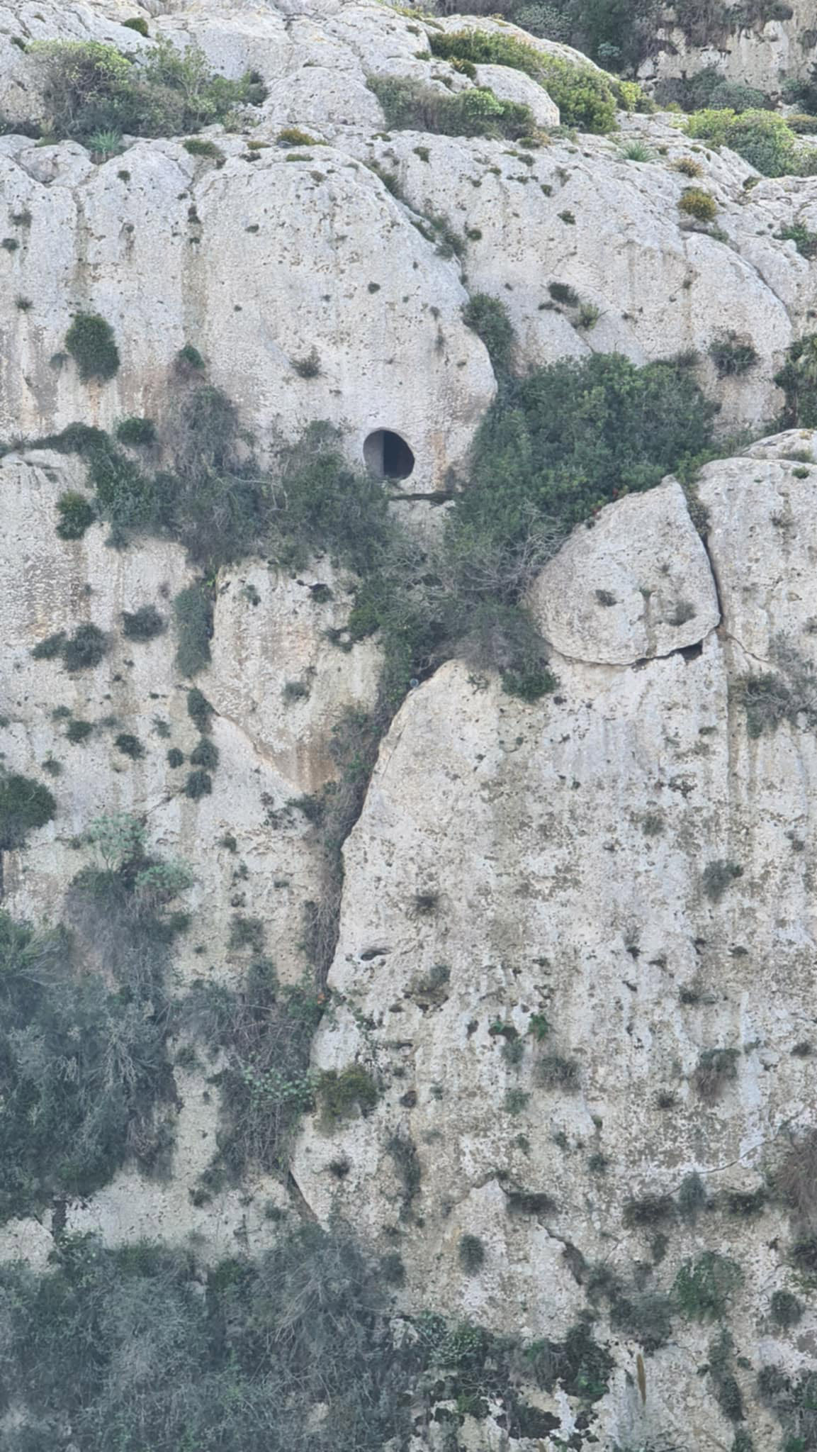 I november 2023 står jeg opptil autovernet ved en bilvei i en mindre pittoresk del av den maltesiske øya Gozo og tar et bilde av den bratte veggen på den andre siden av kalksteinsravinen veien går langsmed. I veggen er det hull, skapt av mennesker, men eldre enn det skrevne ord. Ingen vet hvem som skapte det eller hvorfor. Det er stort nok til at man får plass inni, visstnok, jeg kom ikke nære. Det ligger utilgjengelig til i en bratt fjellside og er fredet uansett. Et gravkammer, spekulerer noen. De tipper alltid gravkammer, gjør de ikke? Som om disse døde menneskene visste at de var døde allerede da de levde og kun satte spor deretter.