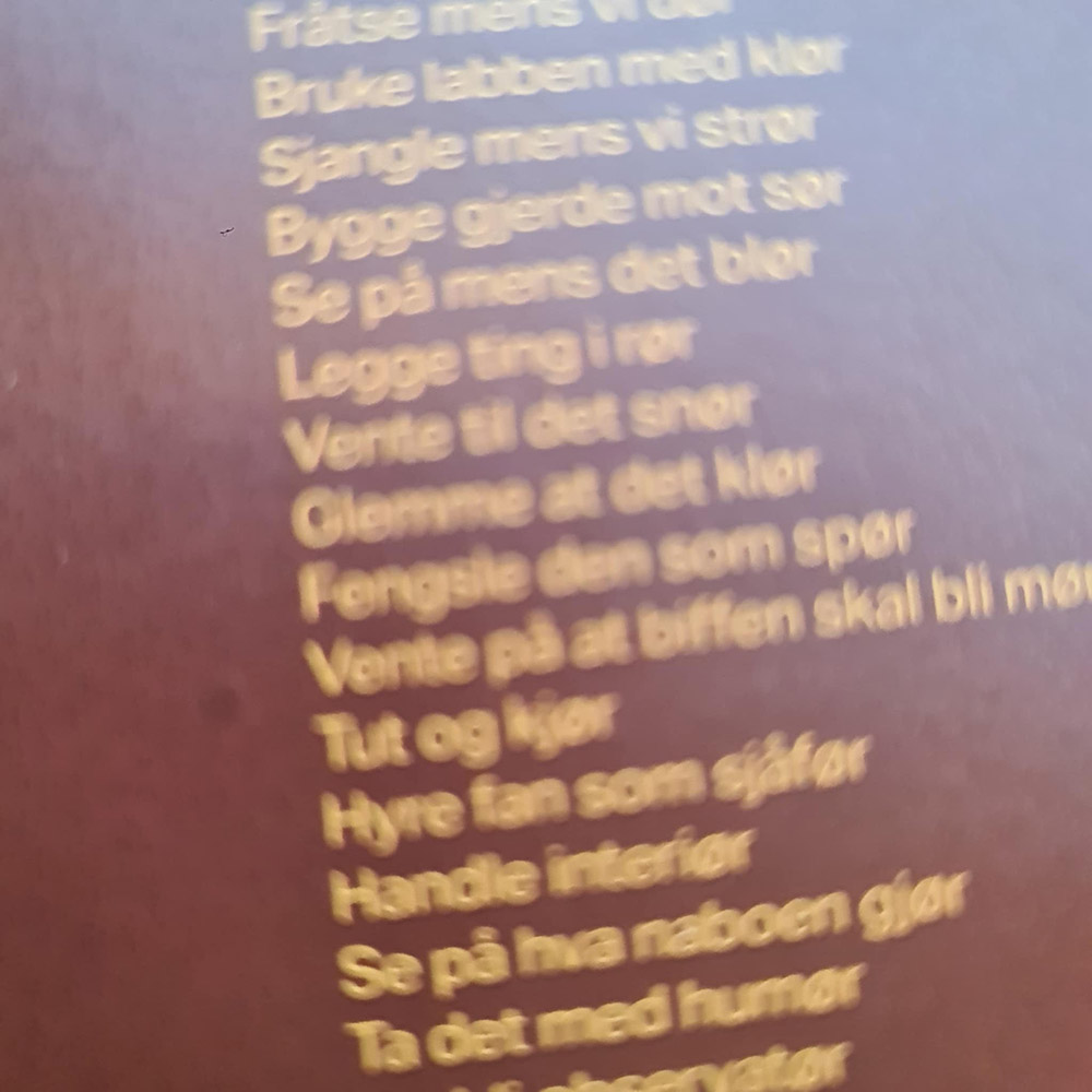 Allerede i november nevnte jeg for blogghalvdel Filip at 2025 var det første året noensinne hvor de tre nye platene jeg likte best var norske alle sammen. “Og alle tre har titler som handler om hvor forjævlig det er å leve for tiden” sa jeg, genuint usikker på om det sa mest om en utvikling i norske albumtitler eller en tilsvarende utvikling i mine lyttevaner.