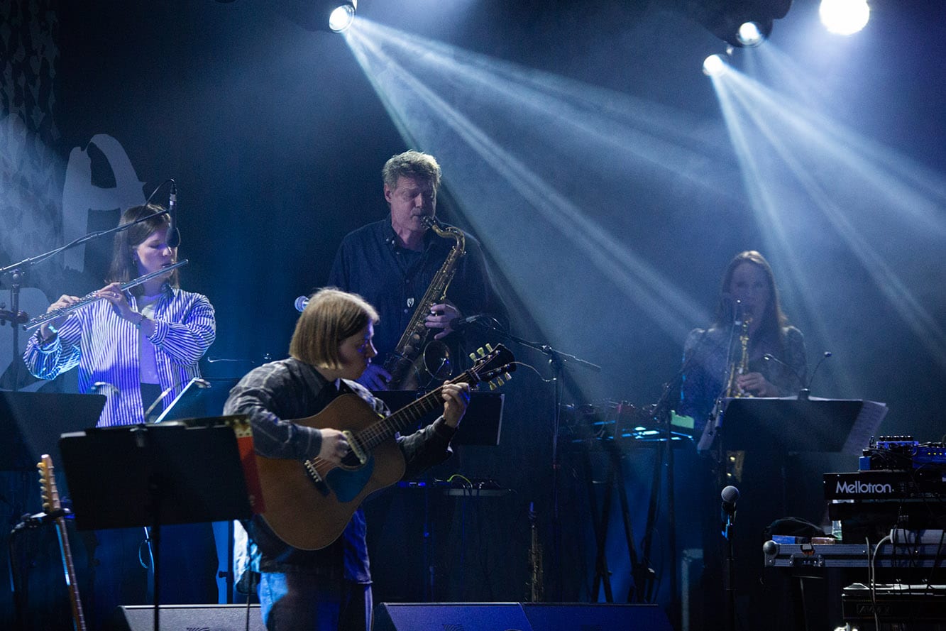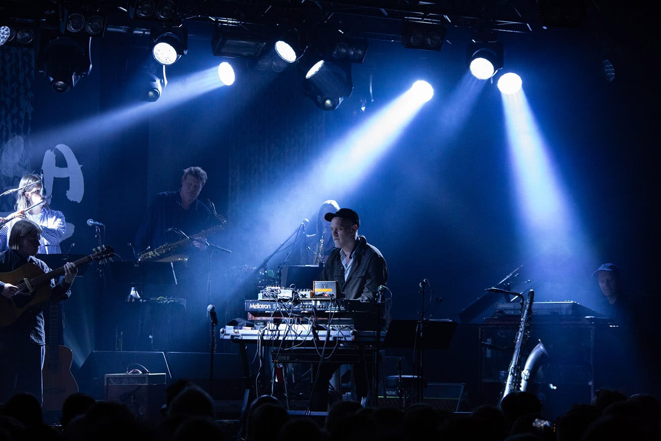 Vi får bare gå gjennom det hele. Martin Morland har denne country funk-grooven i seg på bassen som satt som pølse i vaffel sammen med rytmemonsteret Elias Tafjord som har klubbmusikk som en del av sitt tromme-DNA, han spilte hardt, energisk og lot rytmefigurene rulle og gå på deilig vis. Joel Ring med sitt hippe cellospill som noen ganger også blir som en ekstra bass, tillegger et interessant LES avant garde-preg til musikken. Henriette Eilertsens fløyte hørte vi flere ganger i løpet av helgen – pusten hennes gjorde at det flagret en ånd gjennom musikken. Tuva Halse svaiet i takt med rytmene, var for anledningen kledd i svart skjorte, og hadde noen virkelig sveipende soloer. Vegard Lien Bjerkan har så mange orgler og brett med seg, og sto for saftig blues og soul der det trengtes. Sissel Vera Pettersen sang ord og språkløse flater i tandem med utsøkt saxspill. Torben Snekkestad sto for skronken på diverse saksofoner og en speisa trompet med annet munnstykke som ga skumle fremmedelementer til sounden. Og som alltid gjorde Sander Eriksen Nordahl musikken totalt magisk med sine deilige gitarlyder – først og fremst på psykedelisk elgitar, men mest effektiv i et av konsertens høydepunkt på uimotståelig rytmisk kassegitarspill. Han gjør alle band og plater han er med på kulere og bedre. Yeah!
