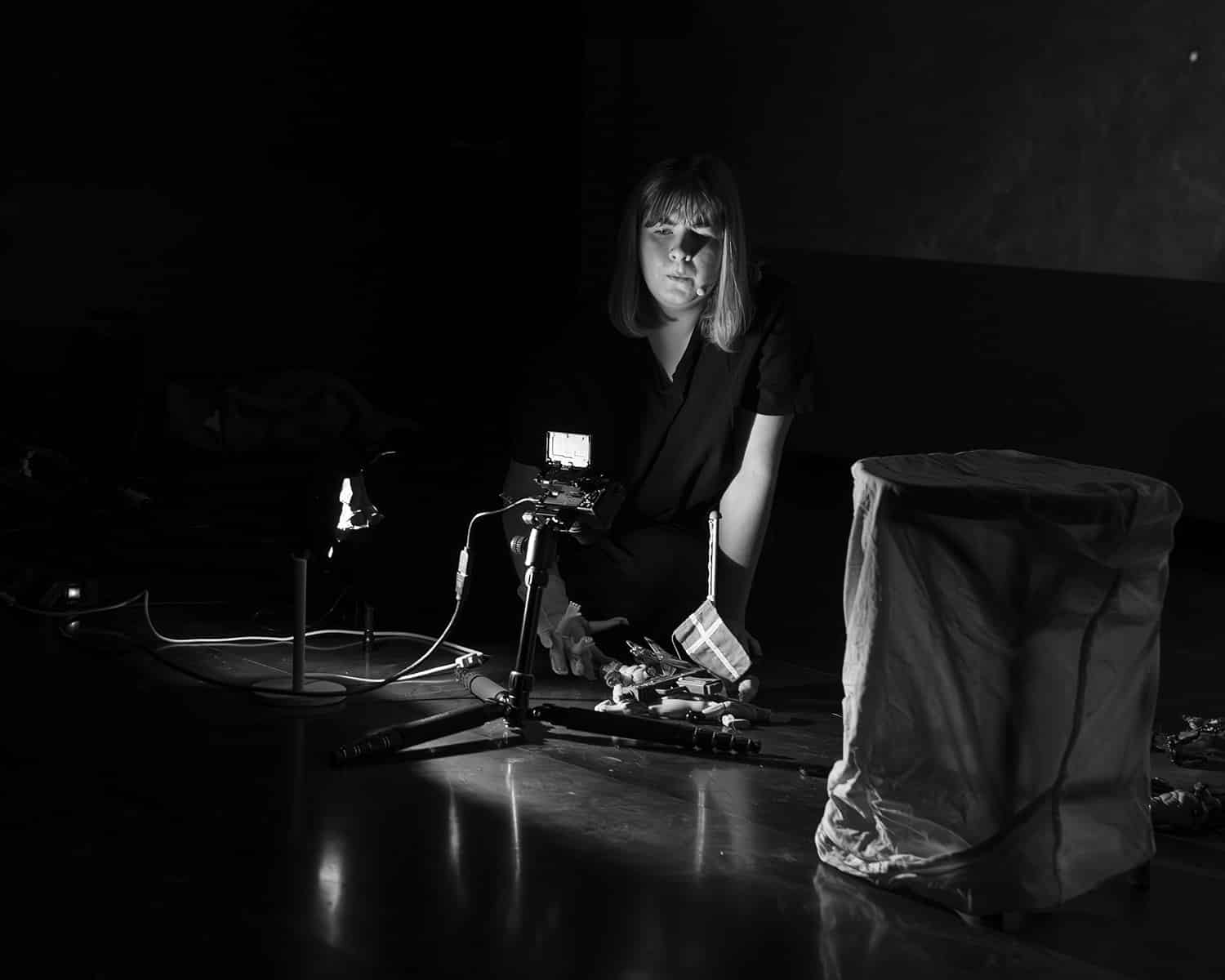 Neste forestilling er i kinoen. Der inne blir vi spurt om å sette oss tettere sammen, sånn at alle kan få plass. Vi skal oppleve Sarah Buchners kombinasjon av vokal og dukketeater. De opptrinnene hun skaper, prosisjeres på lerretet bak henne. En muskuløs mannlig barbiefigur innehar en hovedrolle. Han er ramponert og forsøkt limt sammen, later det til, og han blir utsatt for plage og dans. Innholdet er absurd og tidvis humoristisk. Stemmebruken akkompagnerer scenene som framstilles. Krigsfly, våpen og to damebein inngår også i handlingen. En blomst trues på livet, og det makabre spiller med. Det gjør uhyggen også. Dukkelek på voksennivå gir meg ikke allverden denne kvelden, men som en brett i All Ears´ vifte fungerer forestillingen til Sarah Buchner tilfredsstillende.