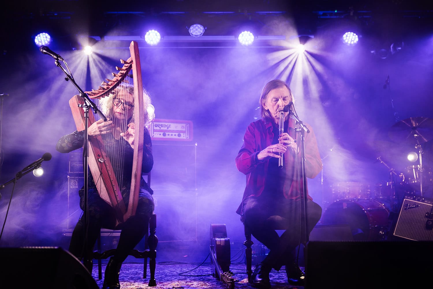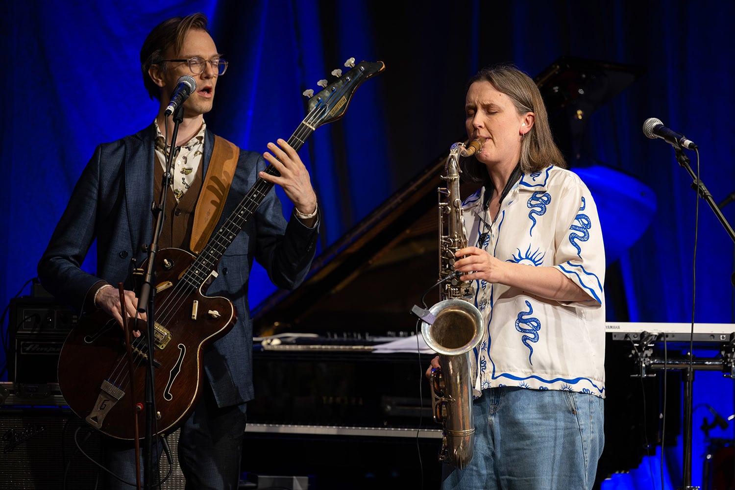 Lørdagseftan var preget av folkemusikk i Kirken, og jazz på bedehuset. Den staselige og lange trekirka på toppen av bysentrum hadde folkemusikk som hovedtema, og dette viste seg å bli en flott og variert stund. Mest spesielt var nok Himmelleite, en duo med dyktige Ingrid Lingaas Fossum, som ble Årets folkemusiker i 2025, og Vemund Olav Aukrust. De har en interessant plate ute med toner fra Valdres og Ottadalen, men det ga ekstra mening å høre dem på langeleik og sang – vi kunne ikke se dem der oppe på galleriet, men musikken deres er idéskapende nok. Martin Steinum Brun sang så hjerter smeltet, og Hans Fredrik Jacobsen hadde med adskillige av sine fløyter. Det var også en opptur å høre duoen med Ingeborg Onstad på langeleik og sang, og hans generasjons største gitarhelt Elias Wallumrød Orning – dette var akustisk og nært, samtidig med en slags ung og moderne kant. Elias hadde forøvrig helgens råeste el-gitarsolo da han dagen før spilte med bandet Sju Månar.