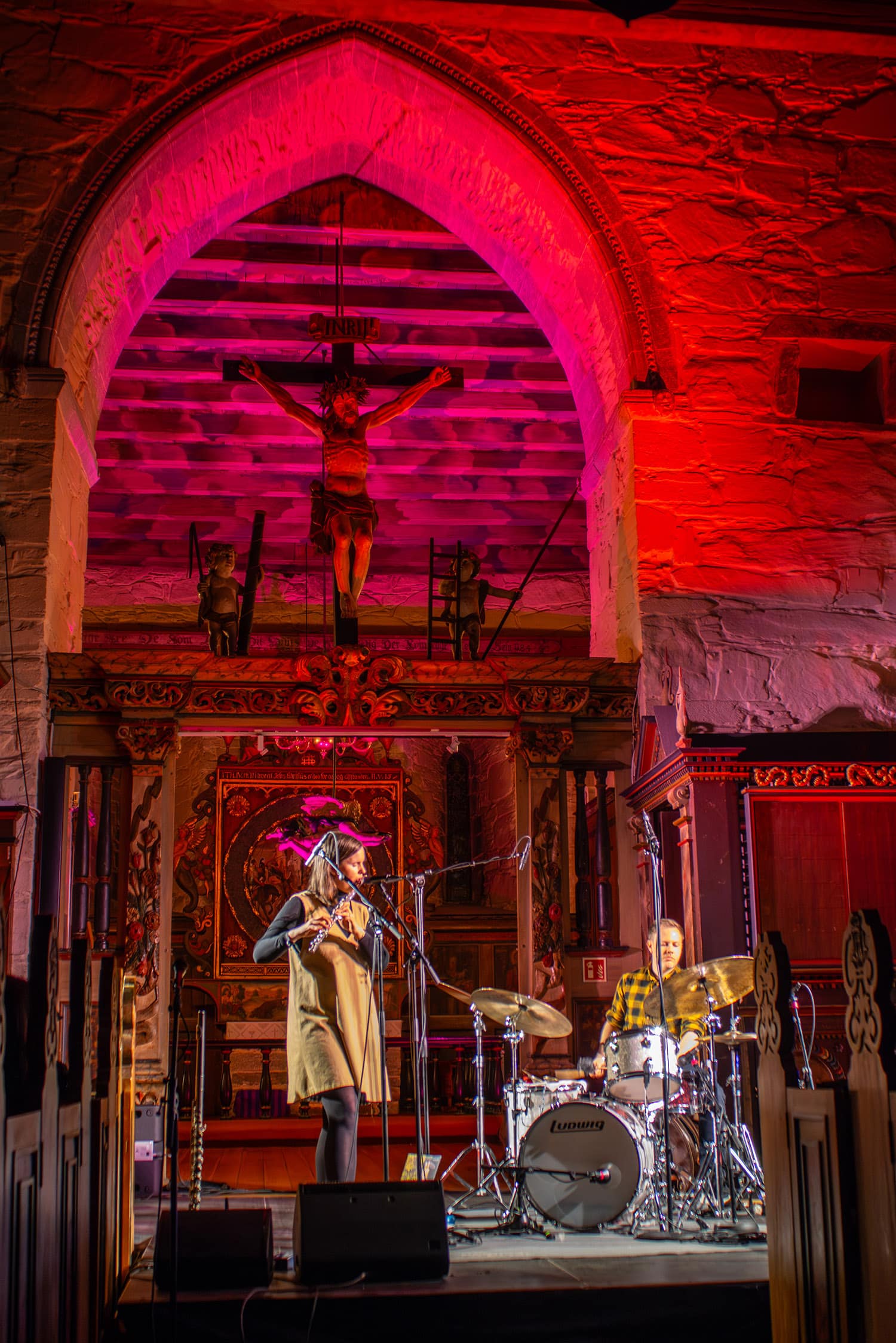 Det fins knapt vakrere rom i hele verden, som fløytist Henriette Eilertsen utbrøt om Vangskyrkja. Hun hadde konsert der inne med sin skarpe trio som består av Joel Ring på cello og Øystein Årnes Vik på trommer. De har utgitt en av årets fineste norske album i «Moder / Mother». Og falt ikke for fristelsen til å gjøre musikken mer sakral eller liknende, det er veldig snappy samspill dem i mellom, en slags lett psykedelisk funk viser seg noen ganger for lytteren, andre ganger havner de inn i hypnotiske groover ikke ulikt Joshua Abrams Natural Information Society. Eilertsen slipper sine fløyter fri så de snirkler seg rundt i den fascinerende arkitekturen, før de stiger til værs. En vidunderlig opplevelse.