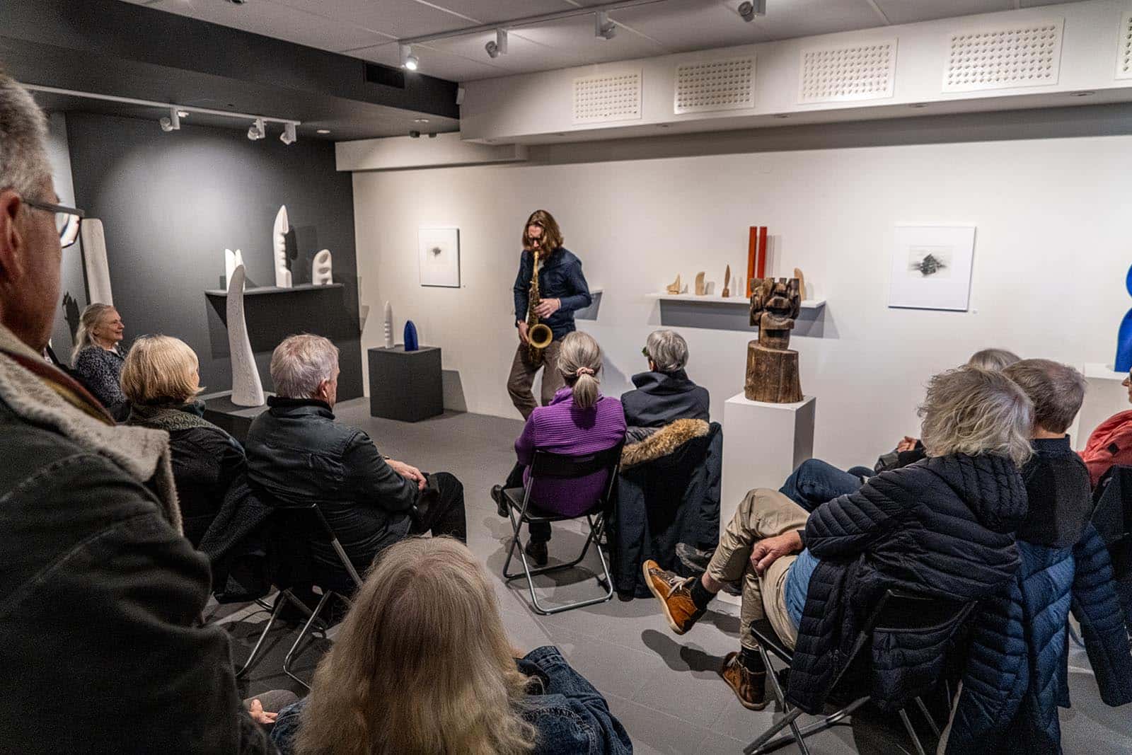 Nydelige Lillehammer er en gedigen kulturby, derfor er det viktig å støtte opp om Kunstløypa, med tre kortkonserter med passe improvisert musikk på tre av kunstgalleriene i byen. Først på Zink, der det var minneutstilling med Karl Johan Giskeødegård musikalske og sanselige skulpturer. Et menneske og en estetikk man kan forbinde med byen og festivalen. Saksofonist Magnus Bakken, blant annet kjent fra bandet A Tonic For The Troops og sin egen utgivelse Slack Line fra i fjor, hadde en vakker stund med improvisasjoner på instrumentet, godt plantet i jazztradisjonen. Og jeg følte at flisen hans harmonerte med materialene i de små skulpturene – trefargede krungler, blå koral og hvite seil.