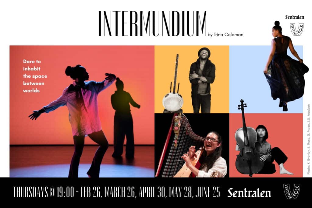 Hva skjer når musikere og dansere med røtter i ulike tradisjoner møtes for første gang – uten ferdige noter eller koreografi? INTERMUNDIUM er en levende, akustisk møteplass der profesjonelle utøvere med røtter i ulike kulturelle bakgrunner og uttrykk møtes i et felles scenisk rom for å utforske musikk og bevegelse i øyeblikket. Hver samling består av et roterende ensemble med tre musikere og én danser. Her oppstår musikk og dans gjennom lytting, nysgjerrighet og samspill. Publikum inviteres inn i et åpent og inkluderende rom, der fokuset er på å være til stede – også når det uventede skjer.