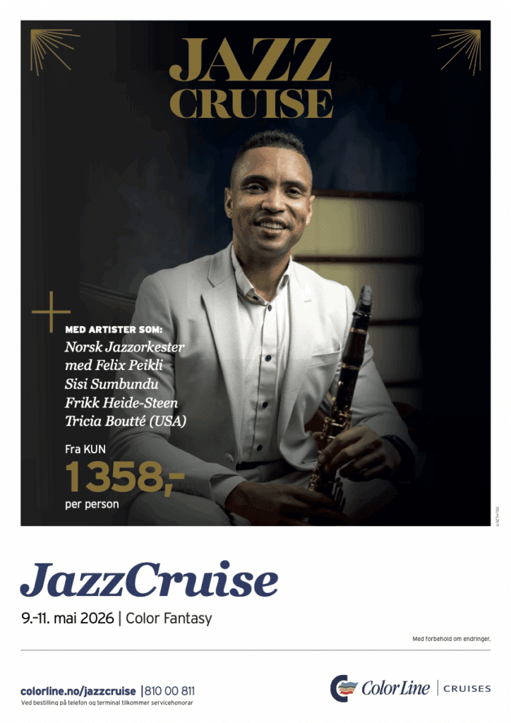 Bli med på JazzCruise og opplev jazzens gullalder! I løpet av to døgn til sjøs hyller vi jazzens giganter – alt mens du nyter havutsikt og god stemning om bord.