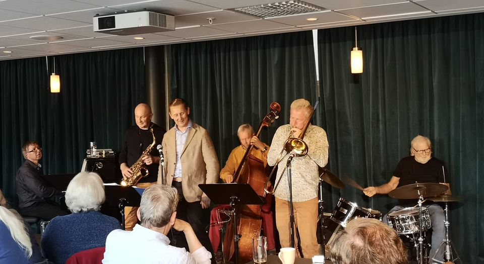 Denne lørdagen, som er dagen før nasjonaldagen, kommer Feetwarmers til Jazzkafe. Vi får som vanlig et gjenhør med swingjazz med fine blåsearrangementer og stødig komp med to blad Hassel (bass og slagverk). VELKOMMEN til å starte feiringen allerede dagen før dagen.