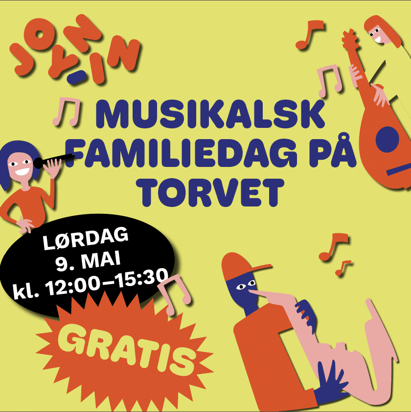Den 9. mai 2026 blir det ny familiedag, denne gangen på Torvet i Trondheim! Det blir liv og røre fra 12:00 til 15:30 med musikk, dans, tull og moro 🤹