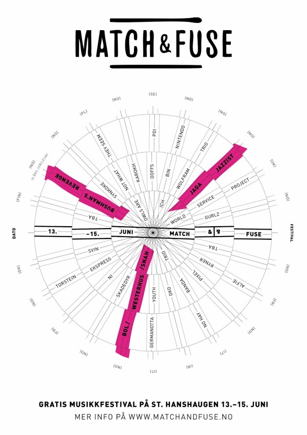 All info om alle band og festivalen / All info about bands and the festival available at: www.matchandfuse.no Generell info om M&F som konsept finnes på engelske sider / General info on the M&F-conceptet at: www.matchandfuse.co.uk Facebookevent: https://www.facebook.com/events/132599280264182/ OG, hvis du liker det vi holder på med, hjelp oss ved å donere et par kroner / ALSO, If you like the project help us finance it by donating a litle bit here: http://www.indiegogo.com/projects/match-fuse-festival-2013-oslo-norway