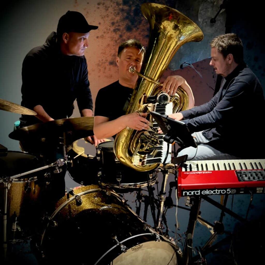 Lars Andreas Haug, tuba – Rasmus Solem, tangenter og Arild Nyborg, trommer.