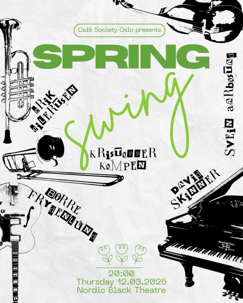 Våren er rett rundt hjørnet! Vi feirer med et fantastisk lag, som alltid med noen av Oslos beste swingjazz-musikere. Alle de fem musikerne spiller med den større gruppen “Jazzombies”, en favoritt blant swingdansere i Oslo.
