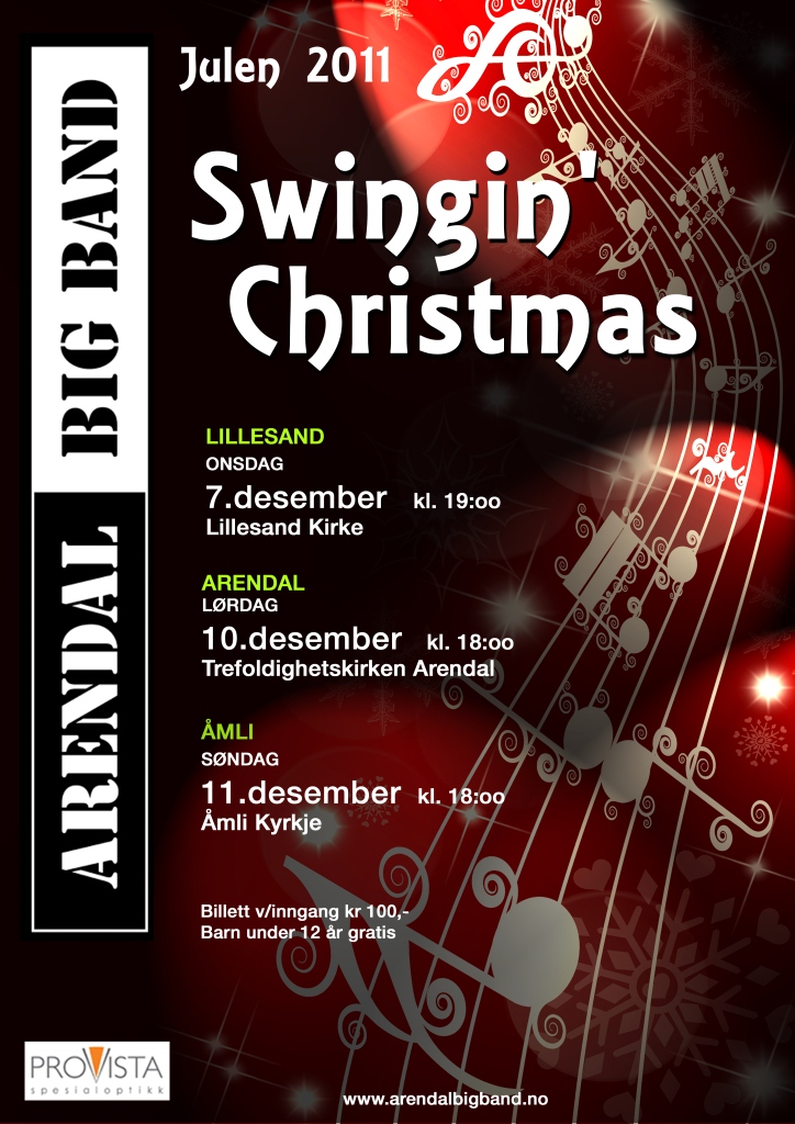 Nok en gang har vi den glede å invitere til julekonsert i Arendal Big Band-stil hvor både nye og gamle låter i spenstige arrangementer står på programmet. Under ledelse av vår engasjerte musikalske leder Audun Dertz ser vi i Arendal Big Band fram til å fremføre årets Swingin’ Christmas. Møt opp og kom i julestemning ♫