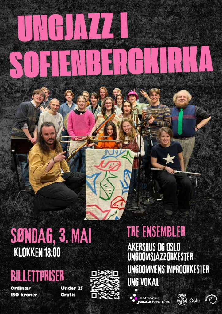 Østnorsk jazzsenter inviterer til fest i Sofienberg kirke søndag 3. mai kl.18.00. De tre ensemblene Akershus og Oslo Ungdomsjazzorkester, Ungdommens Improorkester og Ung Vokal med sine bandledere Magnus Murphy Joelsson, Henriette Eilertsen og Karoline Wallace har skreddersydd et program for et av Oslos vakreste konsertlokaler. Kom å feire vårens ankomst sammen med våre talentfulle ungdommer!